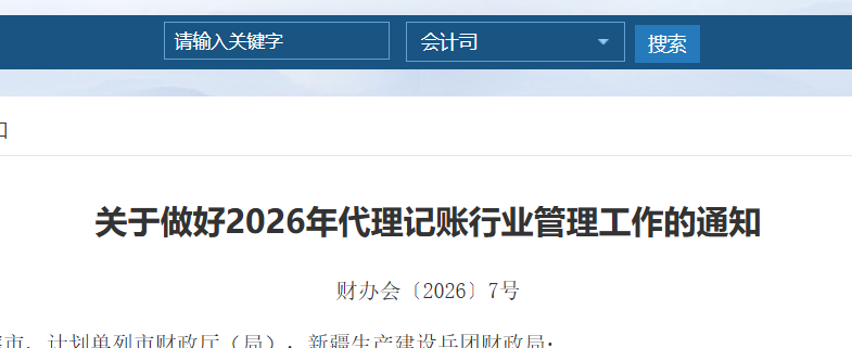为贯彻落实党的二十届四中全会精神,加强财会监督,深化监管改革,持续提升代理记账行业专业化、规范化、法治化水平,有力促进代理记账行业规范健康发展,切实做好2026年代理记账行业管理工作,现将有关事项...